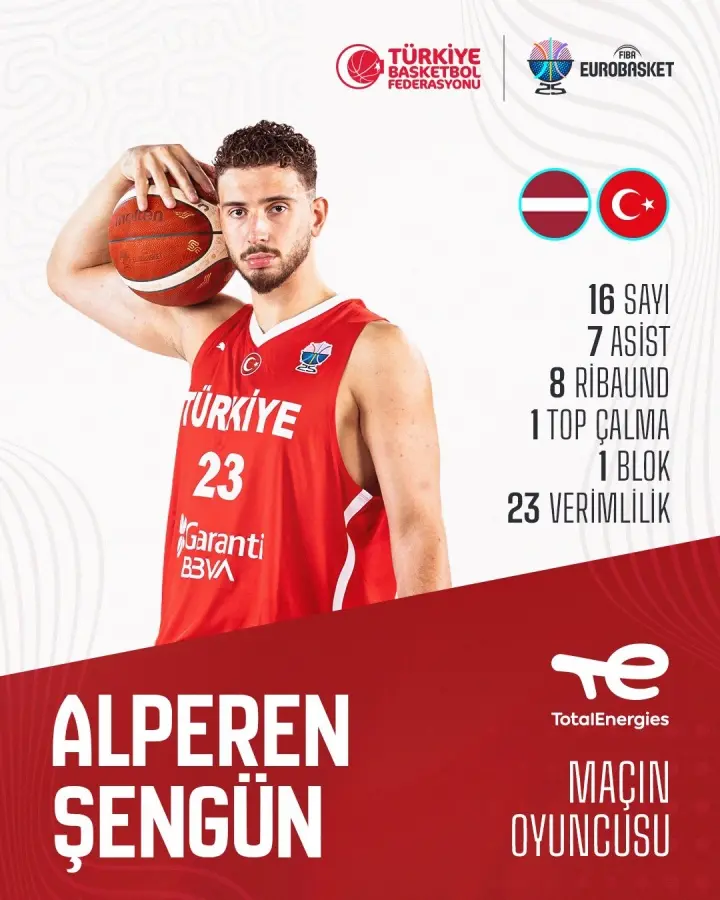 在刚刚结束的欧锦赛男篮小组赛中,土耳其男篮以93-73大胜拉脱维亚男篮,展现了强大的统治力。本场比赛的最大看点无疑是土耳其核心申京与拉脱维亚内线支柱波尔津吉斯的对位,这场内线对决也是被球迷津津乐道,大家想看一下申京和波神的差距有多大,甚至认为波神更强。然而,比赛的进程完全成为申京的个人秀,他在27分钟内高效砍下16分8篮板7助攻1抢断和1盖帽,正负值高达+16,成为全场最佳球员。
